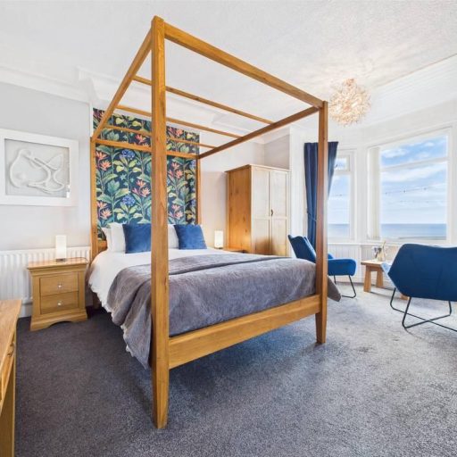 The Oak Room is a Deluxe Seaview Room with 4 Poster king size bed and stunning views across the Irish Sea. It’s ideal to sit and relax in the bay window and watch the world go by. Located on the first floor (accessed by 14 steps) and very popular with returning guests. So book early to get this stunning room.The Elm Room is a stunning Deluxe ensuite with king size bed and fantastic Seaview’s. With its relaxing seating and lovely views its really popular with our returning guests Its on the second floor and accessed by 28 steps.The Redwood penthouse room with gorgeous views across Morecombe Bay and the Lake District. With a spacious ensuite bathroom, lovely seating area and 48” smart TV. Its idea for those who love a view and want a larger room to relax and unwind. Being the penthouse its located on our top floor and accessed by 42 steps so not suitable for those with mobility issues.The Beach Room is a lovely superior ensuite with side Seaview’s. It can be either a Twin (2 single beds) or one Super king bed. Its on the first floor and popular with those who struggle with stairs.Maple Room a spacious Superior Side Seaview King ensuite room. With a comfy seating area and 50” smart TV its a great room for those looking to relax and stay for a few days. Located on the second floor its accessed via 28 steps.The Willow Room is a spacious Superior Side Seaview room. One of our most popular, the Willow boasts king size bed, 50” smart TV and lovely side Seaview’s. Its located on the second floor and accessed by 28 steps.The Spruce Room is a lovely standard ensuite with king size bed and side Seaview’s. Its on the first floor and popular with those who struggle with stairs.The Larch Room is a cosy standard ensuite with king size bed and side Seaview’s. With its stunning views over Morecombe Bay and the Lake District, it has the feeling of a cosy den and is complemented with its tartan décor. Located on our Top floor its accessed by 42 steps and thus not suitable for those with mobility issues.The Cedar Room is a lovely spacious standard ensuite with king size bed and side Seaview’s. With a comfy king divan bed and 43” smart TV its a real home from home space. Its on the second floor and accessed via 28 steps.